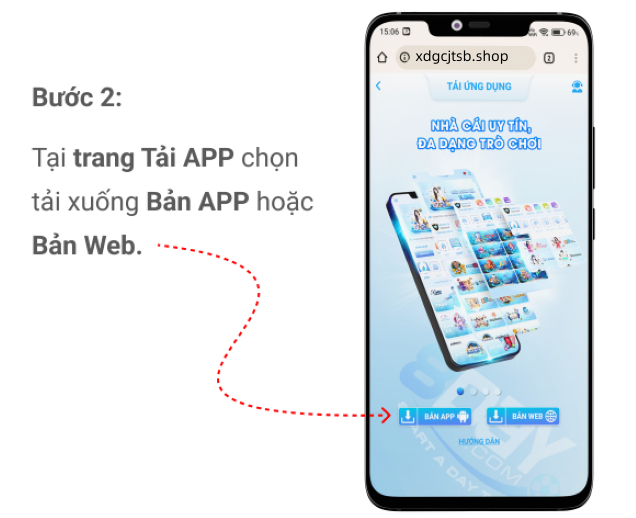 Buóc 2: T?i trang T?i APP ch?n t?i xu?ng B?n APP ho?c B?n Web